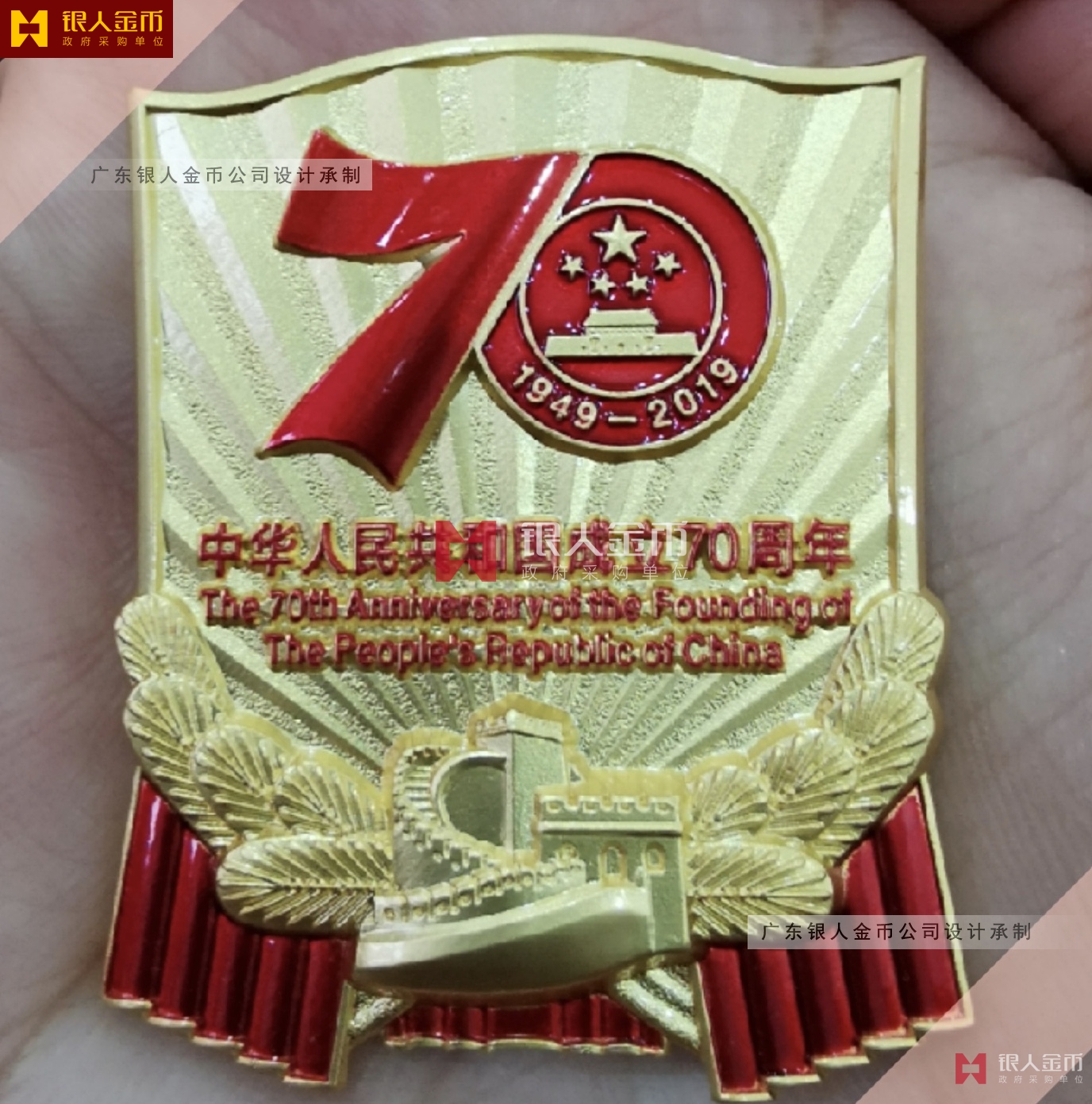 中宣部國慶70年慶祝活動留念紀念章紀念徽章證書
