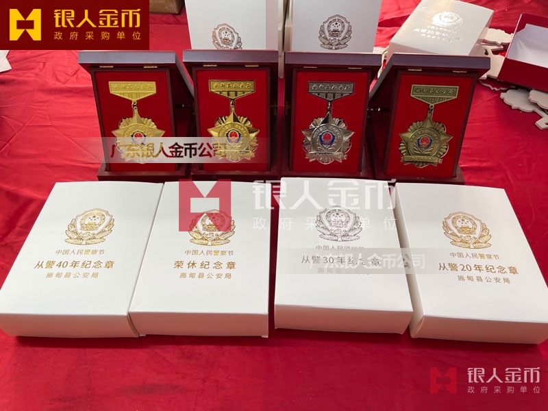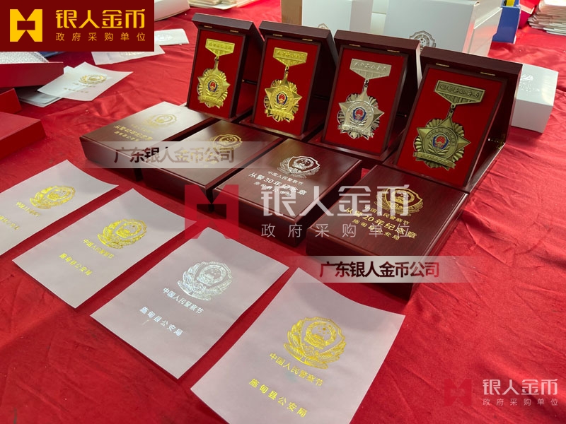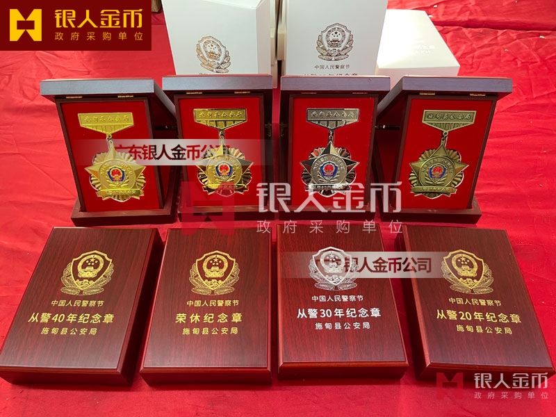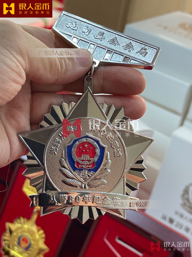 公安民警輔警安保從警10年榮譽銅質(zhì)紀(jì)念章、從警20年榮譽銀質(zhì)紀(jì)念章、從警30年金質(zhì)榮譽紀(jì)念章