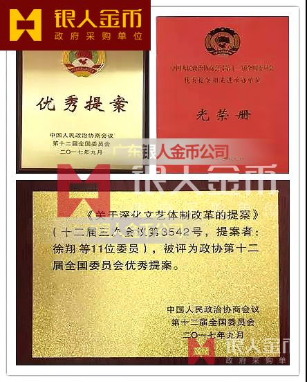 除此之外,還是重要證章和金銀幣文化產(chǎn)品的制造者,比如黨員徽章、黨徽、體育賽事運會獎牌、黨政單位授予獎牌、部分授權(quán)委托生產(chǎn)、設(shè)計、定制國家級榮譽(yù)獎?wù)录凹o(jì)念章等通俗來講,廣東銀人金幣公司不僅可以造章(包括金銀章、紀(jì)念章、獎?wù)隆渍拢贿€可以制作各種證章、徽章;比如中共新疆自治區(qū)黨委組織部監(jiān)制中組部標(biāo)準(zhǔn)黨員徽章、中共湖南省委辦公廳監(jiān)制中共中央組織部標(biāo)準(zhǔn)指定定點黨徽、海南省政府外事僑務(wù)辦公室頒授的"國賓接待榮譽(yù)酒 店“稱號牌匾獎牌、以褒獎該酒店在博鰲亞洲論壇期間接待國家元首及政府首腦的出色表現(xiàn)。