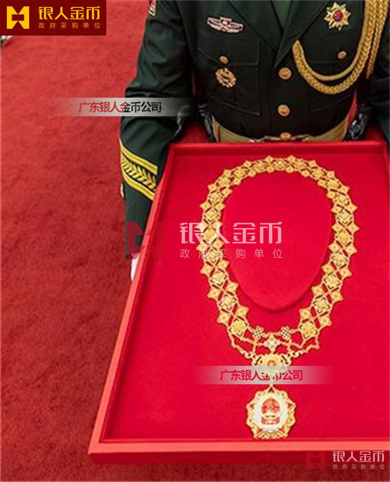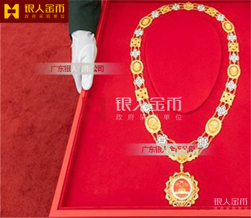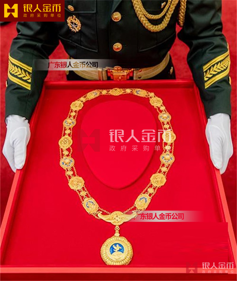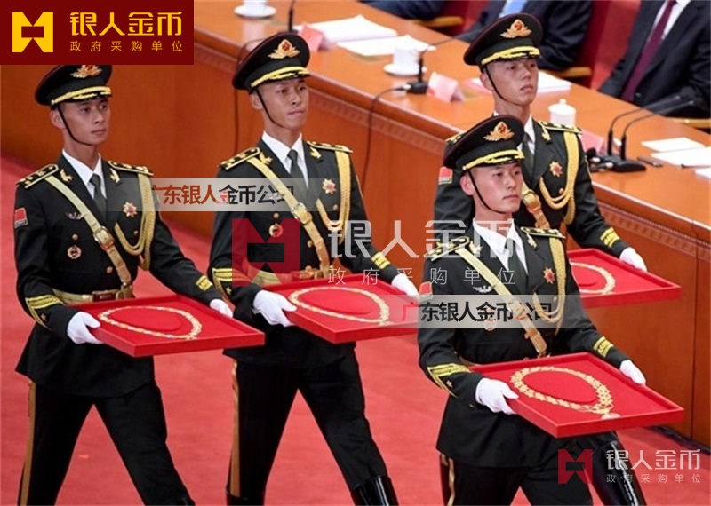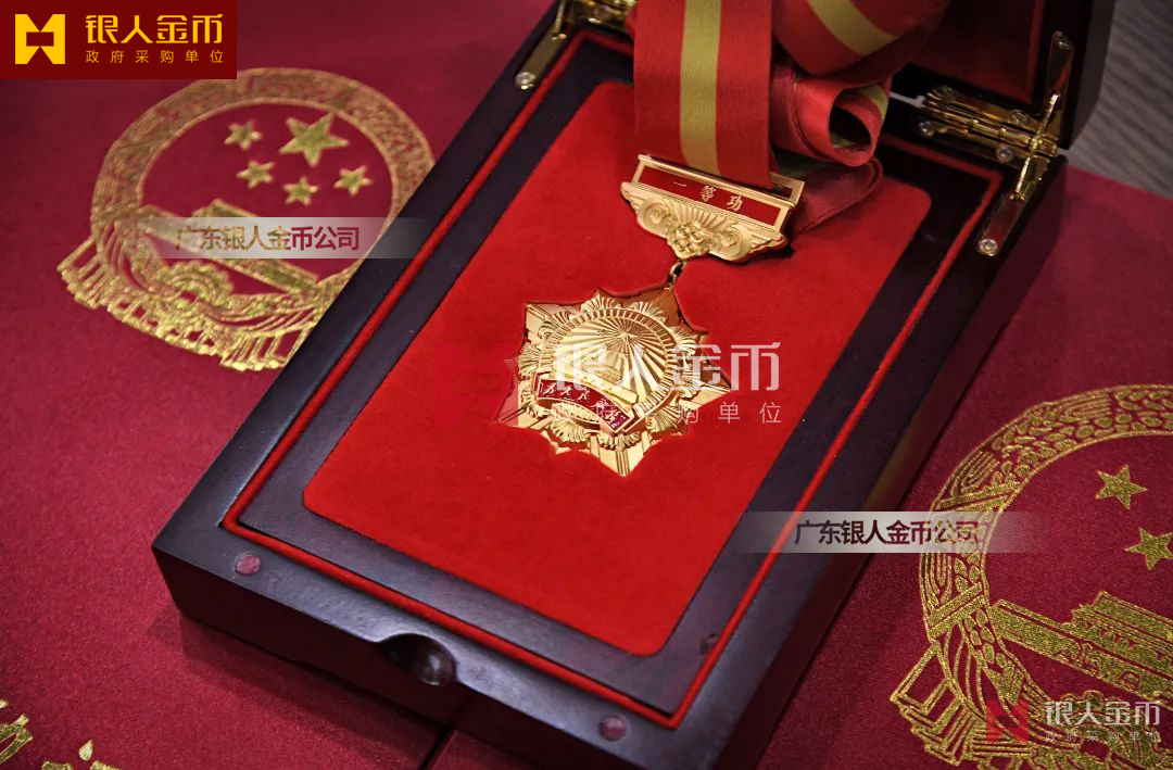 在全國獎?wù)聞渍骂I(lǐng)域,廣東銀人金幣公司擁有專業(yè)的勛章產(chǎn)業(yè)規(guī)模、齊全的證章門類和完整的紀(jì)念章產(chǎn)業(yè)鏈條。除了負(fù)責(zé)各省市政府部門表彰獎勵勛章、獎?wù)隆⒓o(jì)念章的設(shè)計、研發(fā)、定制、服務(wù)于榮譽(yù)功勛全生命周期管理,廣東銀人金幣公司還是標(biāo)準(zhǔn)國標(biāo)999黃金足金金條的制造者之一。