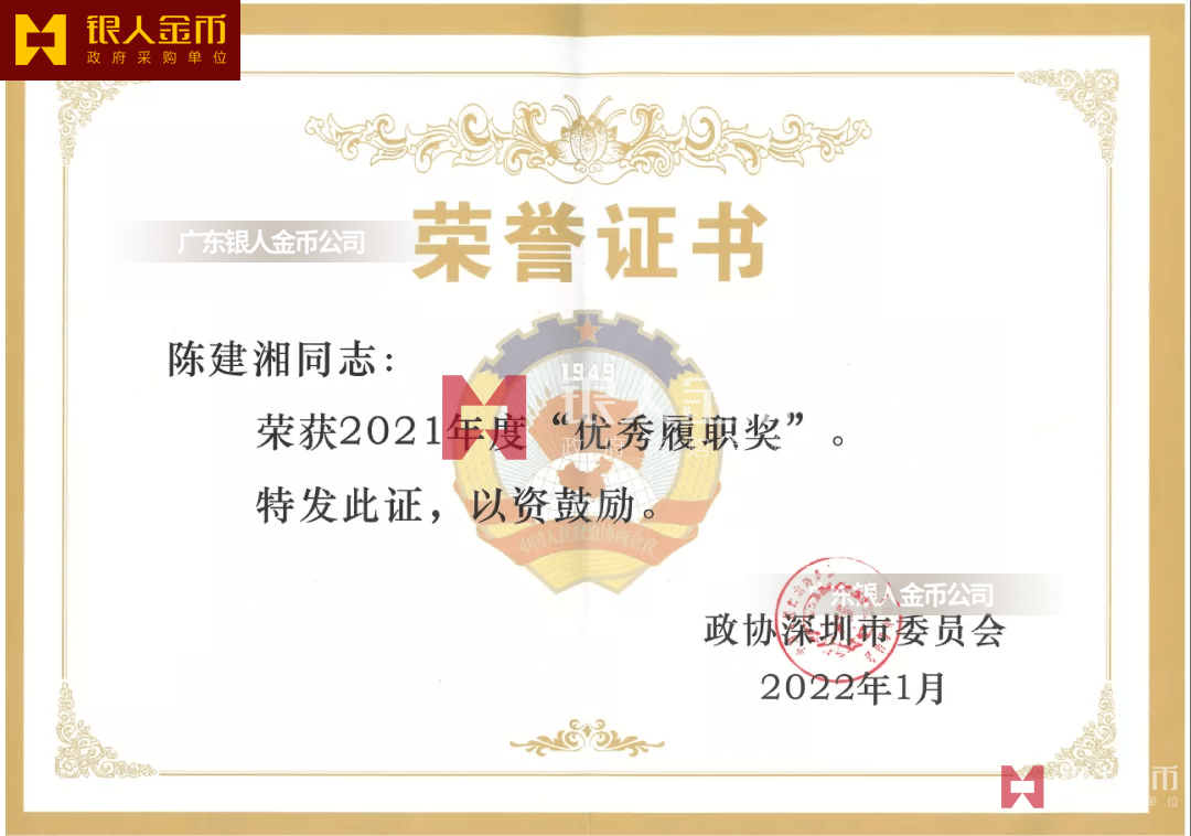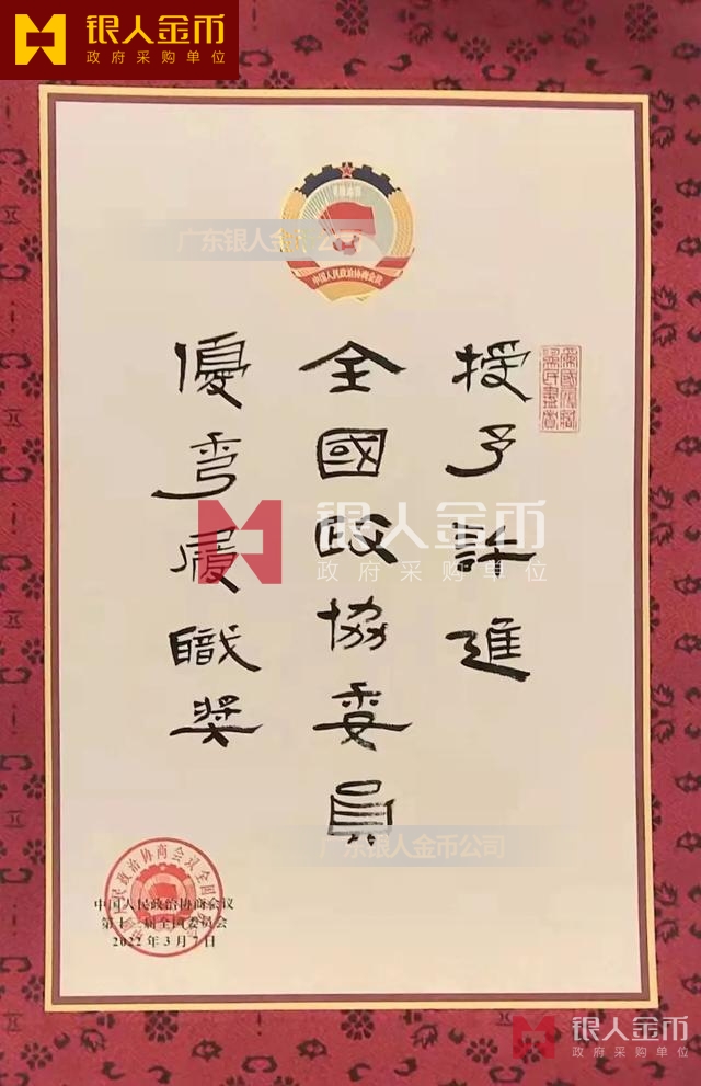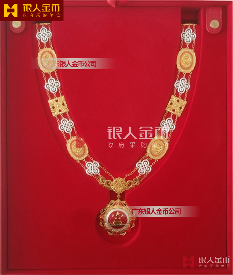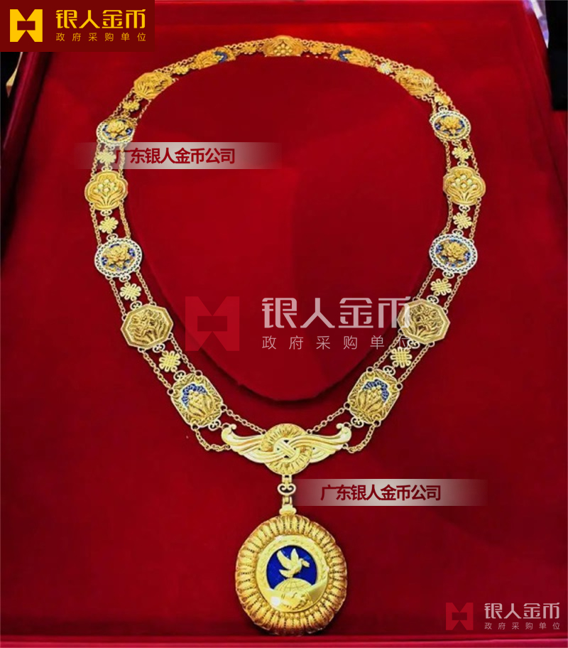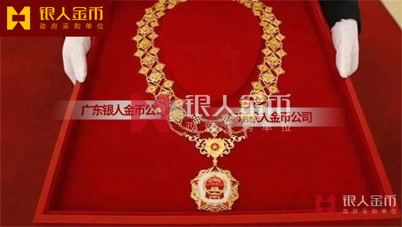 在全國獎?wù)聞渍骂I(lǐng)域,廣東銀人金幣公司擁有專業(yè)的勛章產(chǎn)業(yè)規(guī)模、齊全的證章門類和完整的紀(jì)念章產(chǎn)業(yè)鏈條。除了負(fù)責(zé)各省市政府部門表彰獎勵勛章、獎?wù)隆⒓o(jì)念章的設(shè)計、研發(fā)、定制、服務(wù)于榮譽(yù)功勛全生命周期管理,廣東銀人金幣公司還是標(biāo)準(zhǔn)國標(biāo)999黃金足金金條的制造者之一。