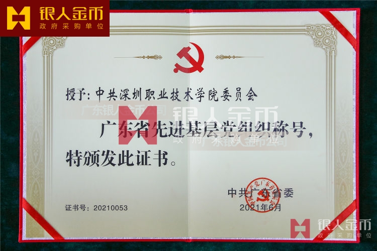 中共廣東省委、省委組織部兩優(yōu)一先:優(yōu)秀共產(chǎn)黨員獎?wù)潞蛢?yōu)秀黨務(wù)工作者勛章及先進(jìn)基層黨組織獎牌牌匾證書(制作標(biāo)準(zhǔn))-【廣東銀人徽章廠有限公司】