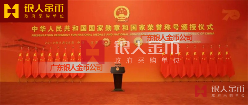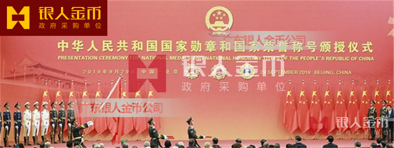 2019年,國慶七十周年之際,中宣部委派中央電視臺授權(quán)廣東銀人金幣公司為國慶70周年紀(jì)念章設(shè)計制造單位。過去社會上常常把金幣公司這個行業(yè)稱為“三特”行業(yè),指的是“生產(chǎn)特殊產(chǎn)品的、實行特殊管理的特殊行業(yè)”。