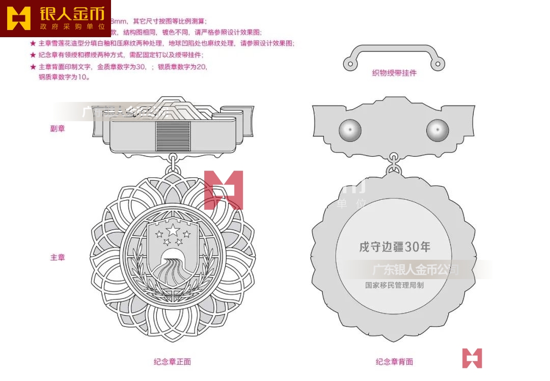 國家移民管理局戍守邊疆:戍守邊疆30年金質勛章、戍守邊疆20年銀質獎章、戍守邊疆10年銅質紀念章和獎狀及證書(圖)