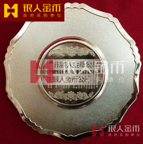 “紀念青藏鐵路開通蓮花寶石浮雕金盤”,限量9999枚,該盤的設計新穎,浮雕工藝細致精美,以華表、長城、布達拉宮等浮雕,體現偉大中華的時代風貌和濃郁的民族風情。金盤采用先進工藝開模鑄造,鍍金、銀,并鑲嵌9顆天然珠寶,并由中國地質學會寶石委員會權威鑒定,具有較高的文化、藝術品位和收藏價值。