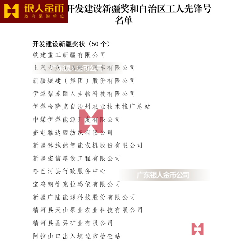 新疆維吾爾自治區黨委“開發建設新疆獎章”即“五·一勞動獎章/工人先鋒號獎狀/獎牌/證書(圖)含新疆生產建設兵團及獲獎名單