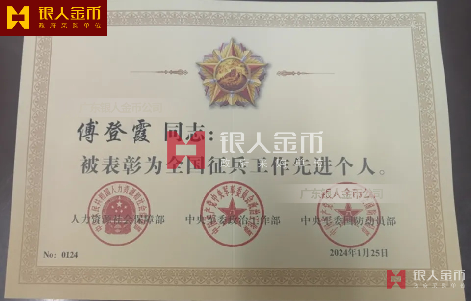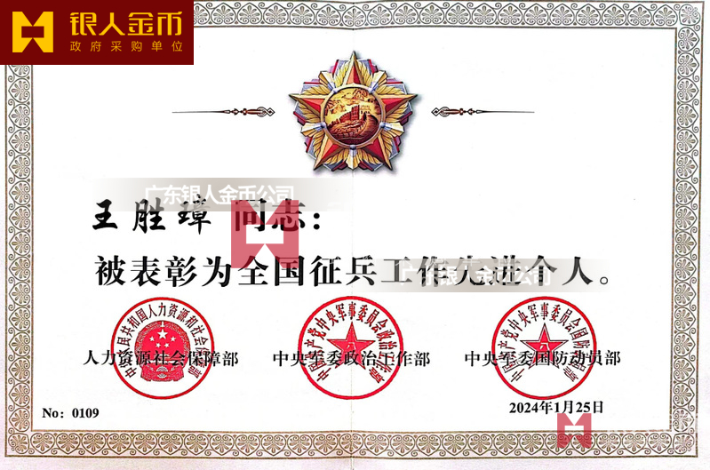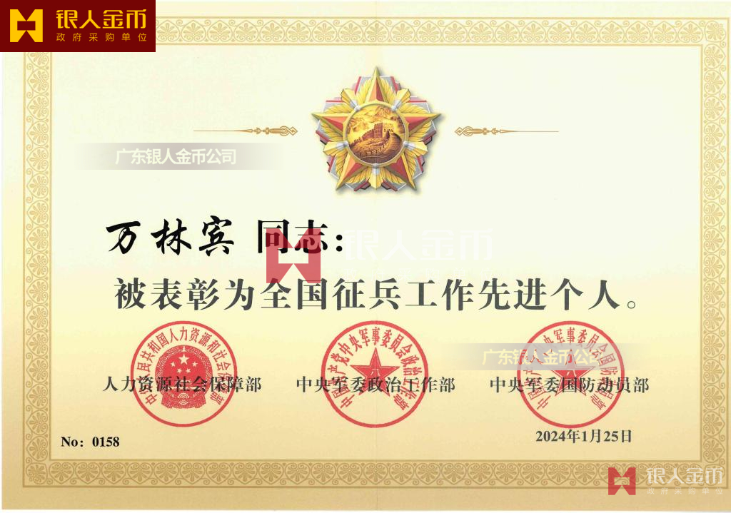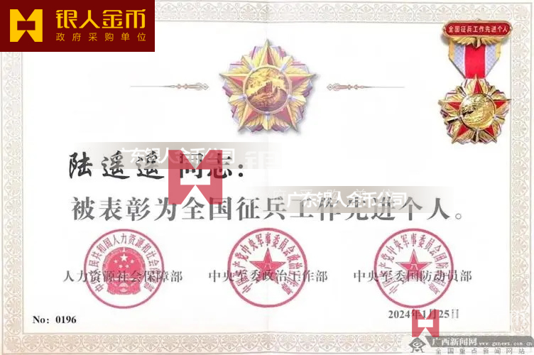 中央軍委政治工作部全國征兵工作先進(jìn)單位獎(jiǎng)牌證書/先進(jìn)個(gè)人獎(jiǎng)?wù)伦C書(圖)
