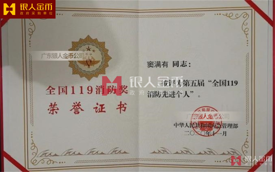 應急管理部全國119消防獎全國119消防先進個人獎章證書(圖)
