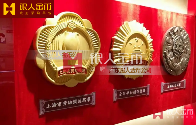 黨史陳列館紀念館大型上海市勞動模范獎章與上海工匠獎章徽標會徽紀念章模型雕塑雕像(圖)
