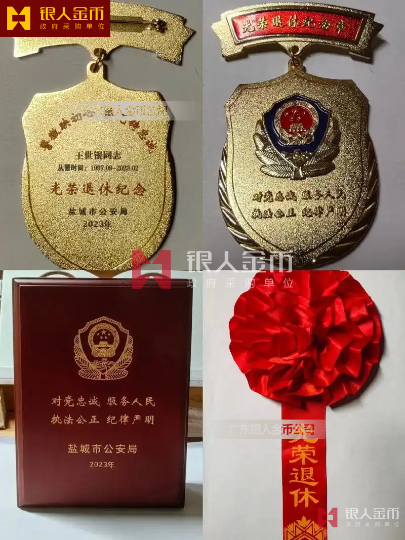 鹽城市公安局公安民警從警30年榮譽(yù)勛章警察光榮退休勛章及干警榮退獎?wù)峦诵輼s譽(yù)紀(jì)念章(圖)