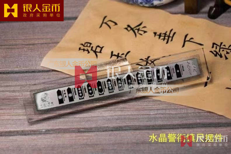 公安局機關系統工會禮品:老干部書法水晶鎮紙擺件-【《公安機關人民警察榮譽儀式規范(試行)》】