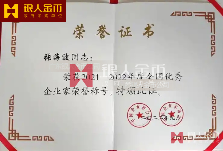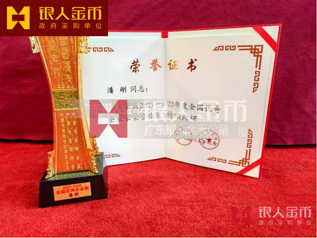 全國優(yōu)秀企業(yè)家獎牌獎杯獎?wù)聞渍伦C書(圖)