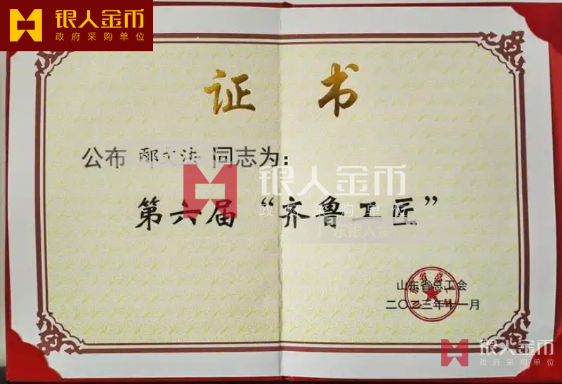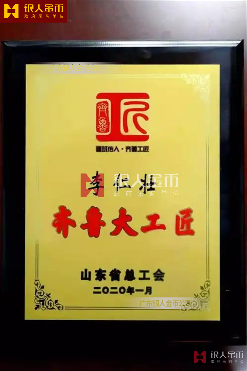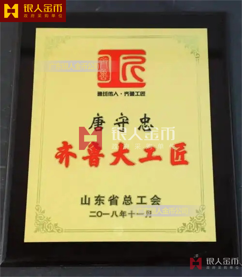 山東省委省政府省人社廳省總工會齊魯大工匠獎章勛章齊魯大工匠獎杯獎牌證書(圖)