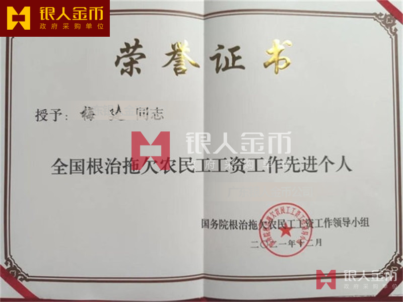 國務(wù)院根冶拖欠農(nóng)民工工資工作領(lǐng)導(dǎo)小全國根治拖欠農(nóng)民工工資工作先進(jìn)個(gè)人和先進(jìn)集體獎(jiǎng)?wù)聞渍录o(jì)念章獎(jiǎng)牌證書(圖)