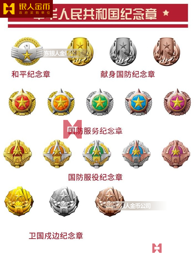 國(guó)防服役紀(jì)念章(按服役年限分為:金質(zhì)、銀質(zhì)、銅質(zhì))