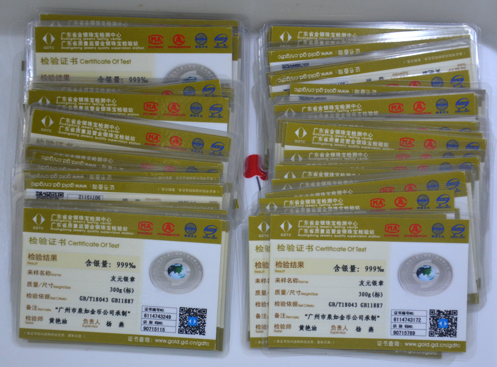 廣東省質(zhì)監(jiān)純金純銀檢測證書