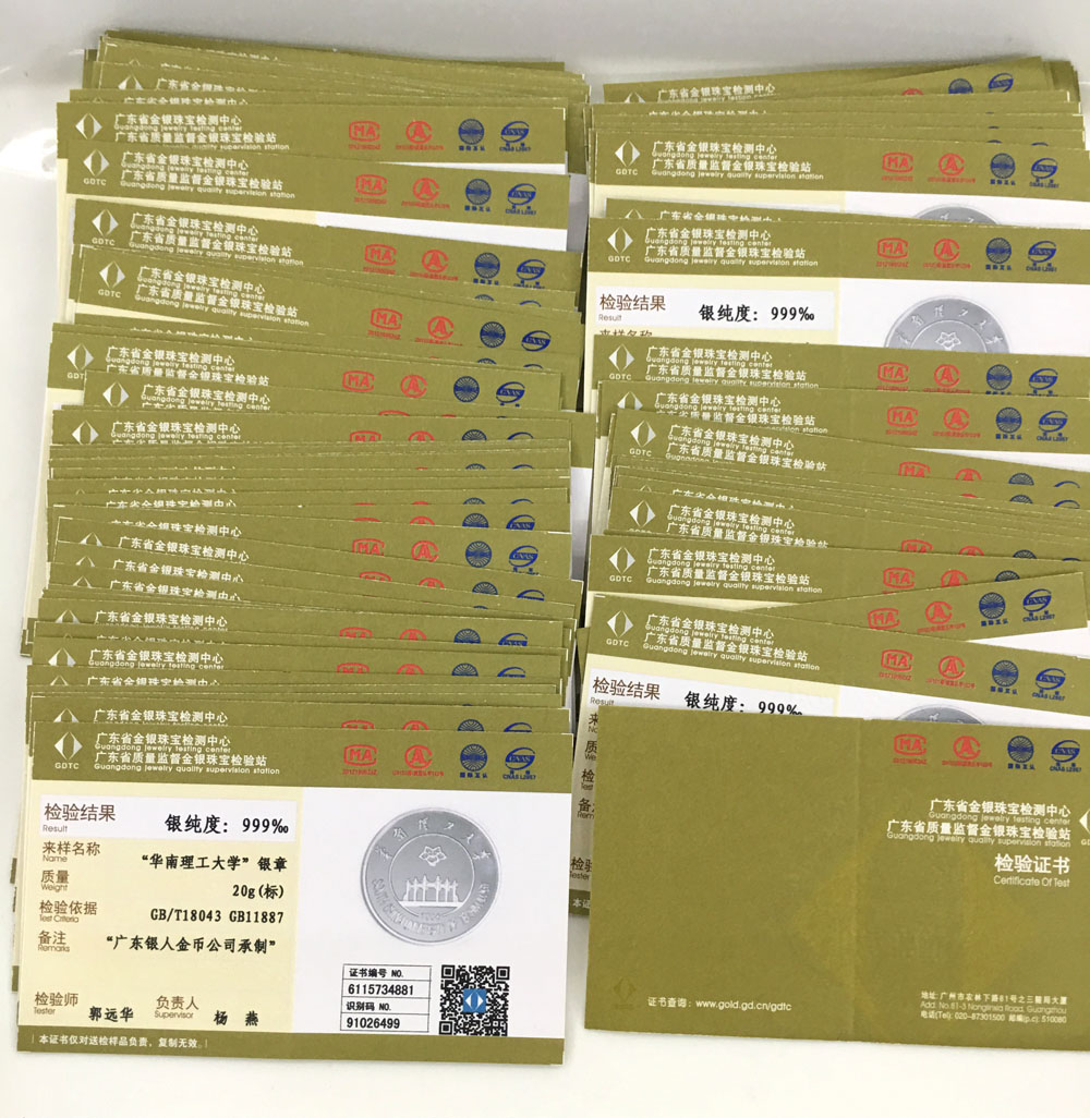 廣東省質監白銀含銀量金銀成色品質鑒定證書