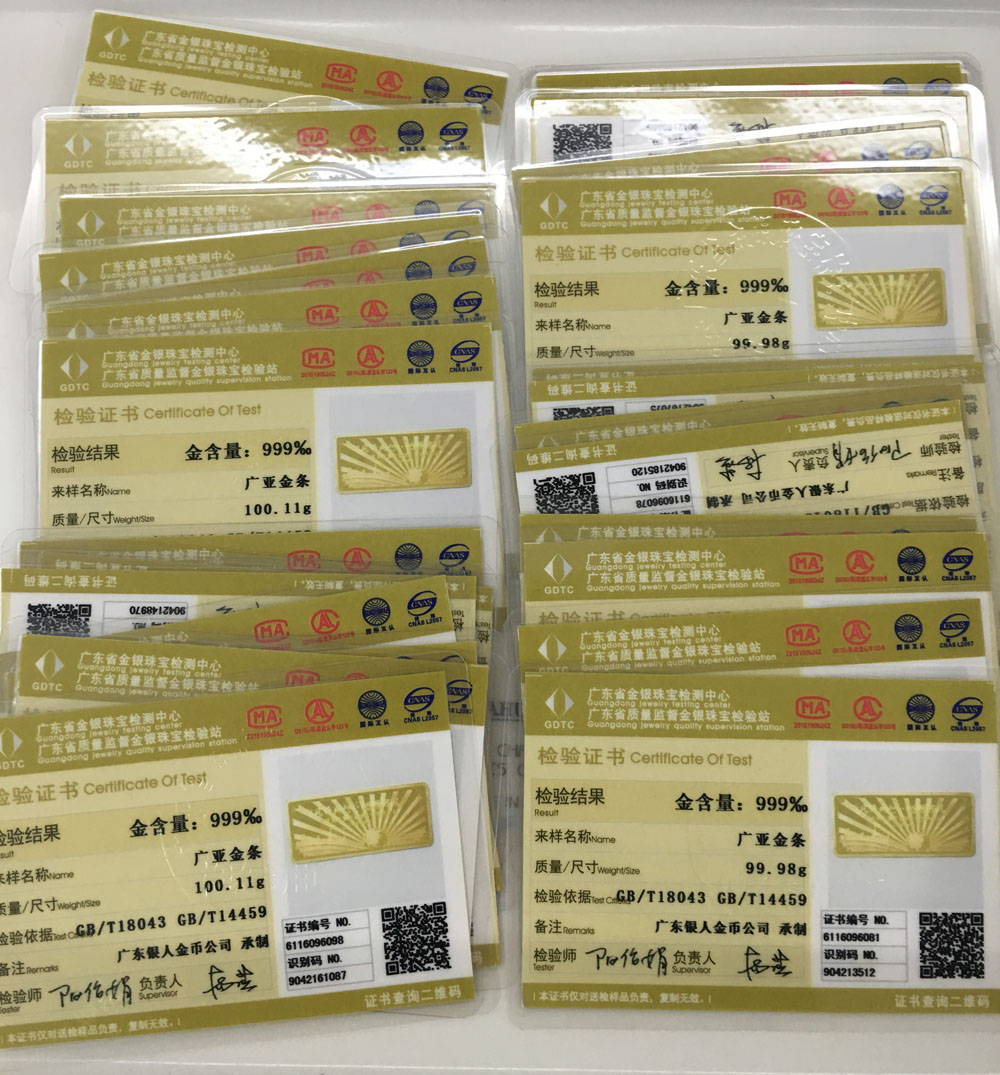 國(guó)家質(zhì)監(jiān)部門黃金金銀鑒定證書
