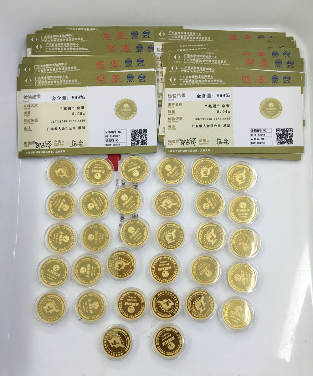 國(guó)家權(quán)威機(jī)構(gòu)純金紀(jì)念幣含金量檢測(cè)證書