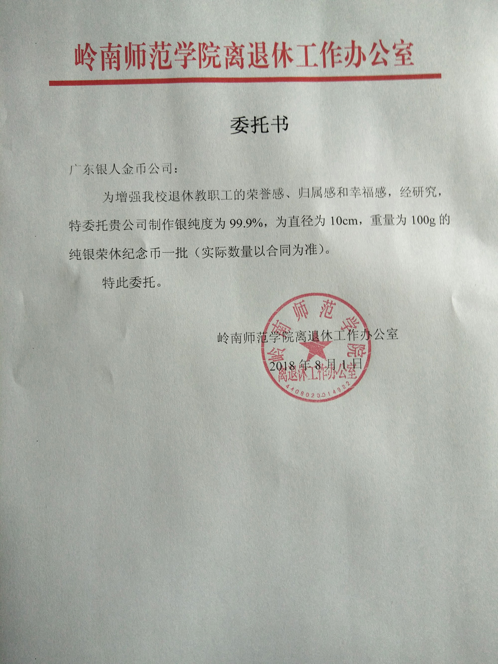 廣州市第七中學校慶紀念銀幣制作介紹函