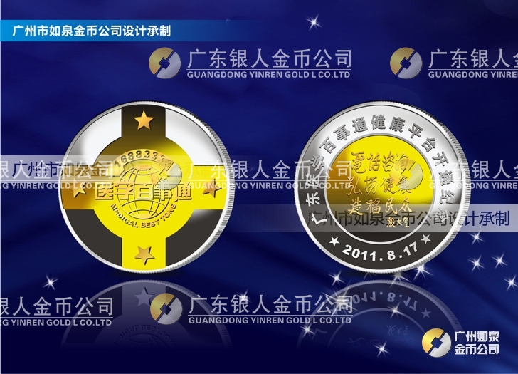 2011年8月:廣州定制金包銀紀念章醫學紀念金章