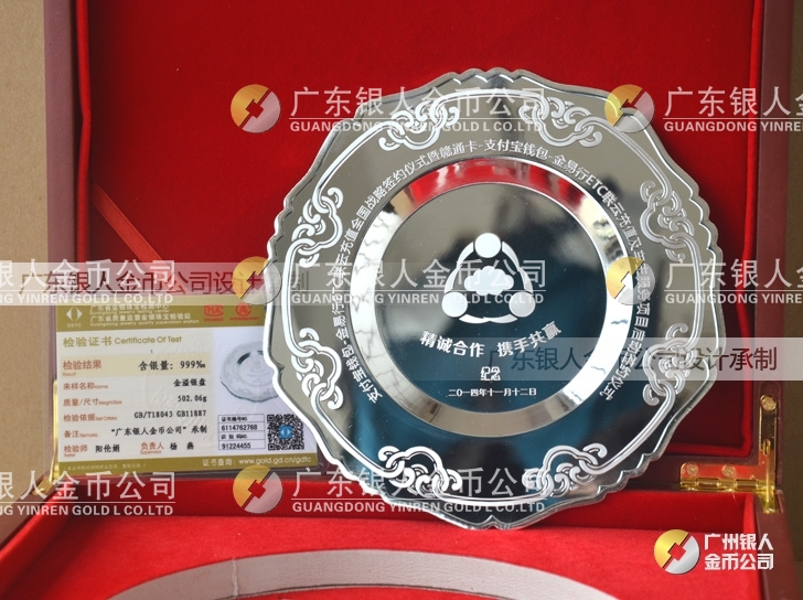 定做熱烈慶祝深圳金溢科技與支付寶達(dá)成ETC戰(zhàn)略合作伙伴純銀紀(jì)念盤制作