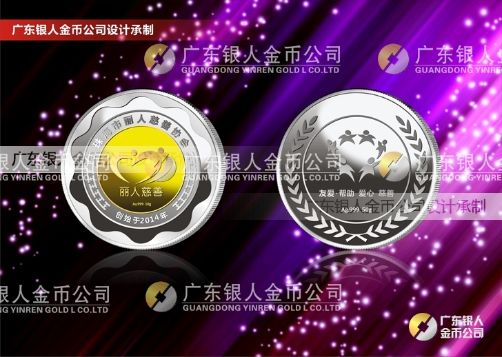 珠海麗人慈善會定制純銀鑲嵌純金幣定制、銀包金紀念幣定制