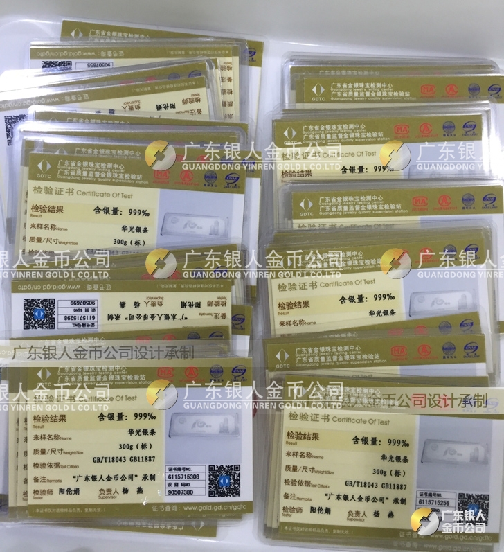 廣東銀人金幣公司承接客戶個(gè)性化定制的金銀幣、金銀章、金銀條、金銀牌、金銀盤均由國(guó)家質(zhì)監(jiān)部門、嚴(yán)格檢測(cè)、權(quán)威鑒定: