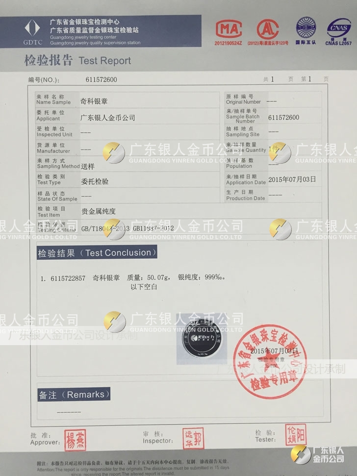 【金銀品質】 國家檢測鑒定、真假防偽查詢