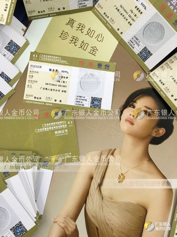 廣東銀人金幣公司承接客戶個性化定制的金銀幣、金銀章、金銀條、金銀牌、金銀盤均由國家質(zhì)監(jiān)部門、嚴(yán)格檢測、權(quán)威鑒定:
