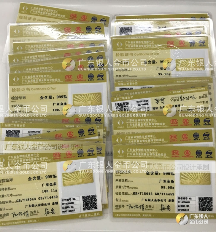廣東銀人金幣公司承接客戶(hù)個(gè)性化定制的金銀幣、金銀章、金銀條、金銀牌、金銀盤(pán)均由國(guó)家質(zhì)監(jiān)部門(mén)、嚴(yán)格檢測(cè)、權(quán)威鑒定: