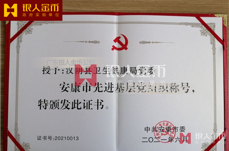 中共安康市委組織部兩優一先優秀共產黨員、優秀黨務工作者和先進基層黨組織獎牌獎章證書(圖)