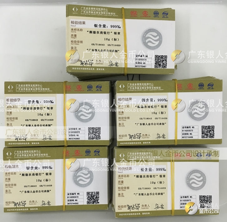 廣東銀人金幣公司承接客戶個性化定制的金銀幣、金銀章、金銀條、金銀牌、金銀盤均由國家質(zhì)監(jiān)部門、嚴(yán)格檢測、權(quán)威鑒定: