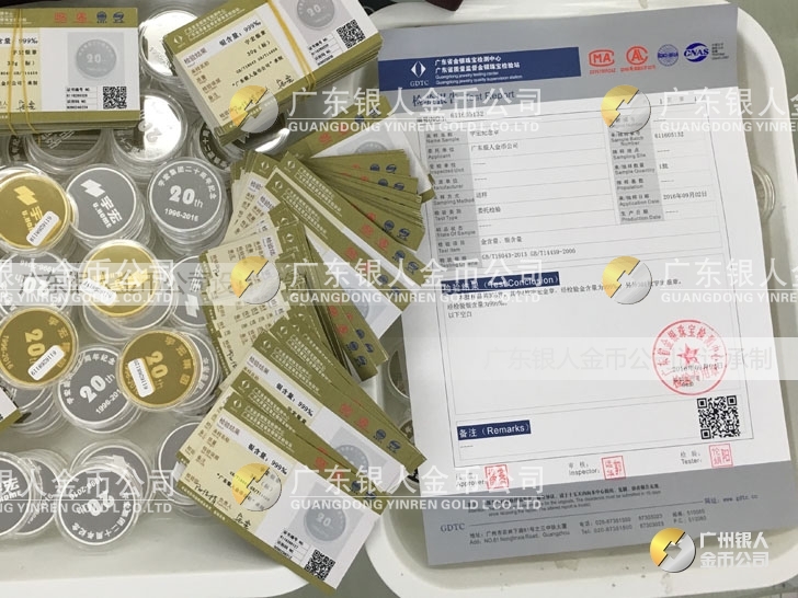 廣東銀人金幣公司承接客戶個(gè)性化定制的金銀幣、金銀章、金銀條、金銀牌、金銀盤(pán)均由國(guó)家質(zhì)監(jiān)部門(mén)、嚴(yán)格檢測(cè)、權(quán)威鑒定: