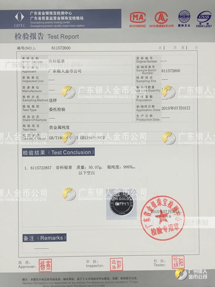 【金銀品質】 國家檢測鑒定、真假防偽查詢