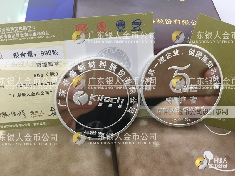 奇德新材料公司作為一家新材料、新能源公司,是國家級高新技術企業,為表彰獎勵5周年老員工定制銀牌。