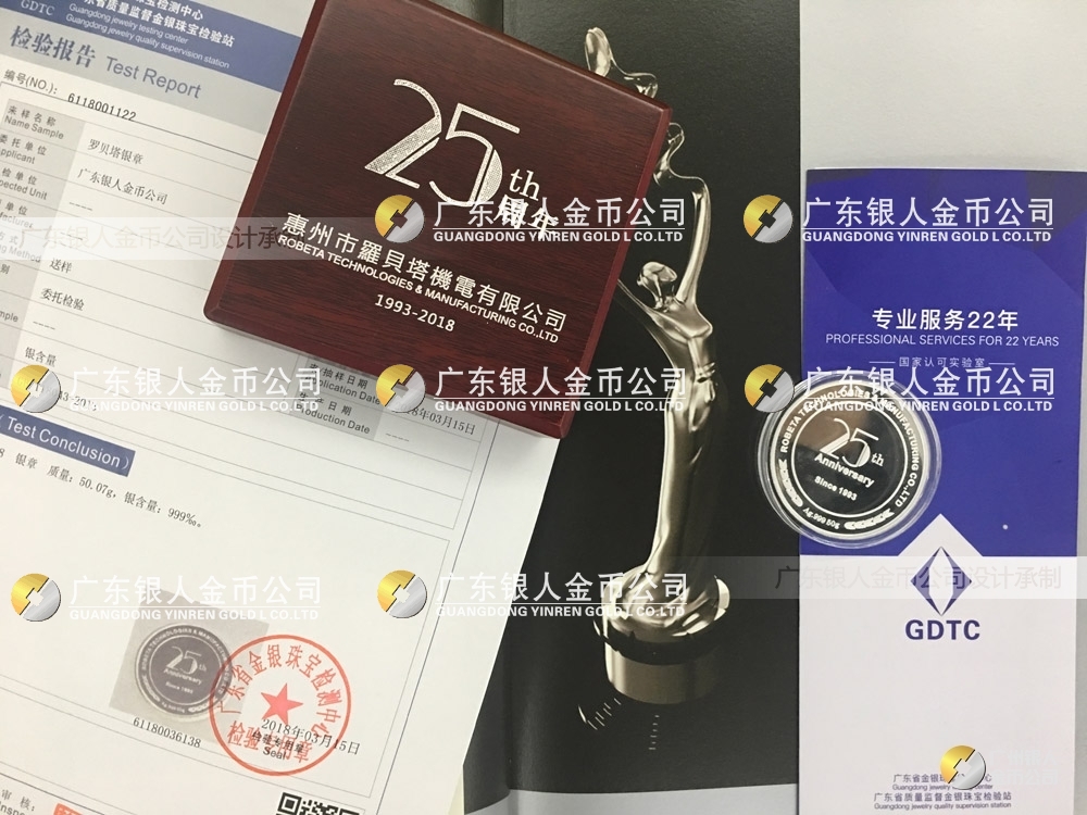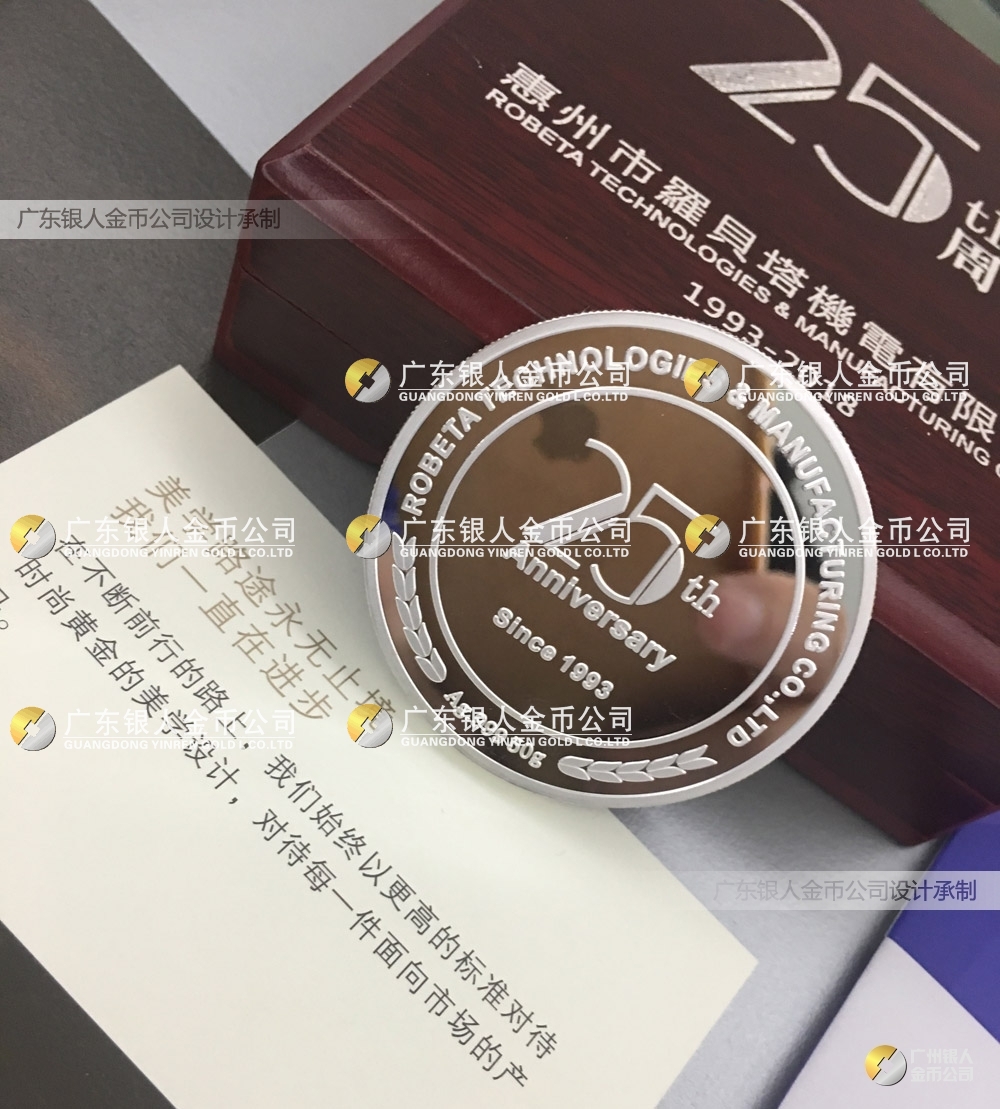 創建于1993年的機電行業品牌羅貝塔,為工業自動化設備領先企業,特此委托我司定制慶祝公司成立25周年紀念銀幣。