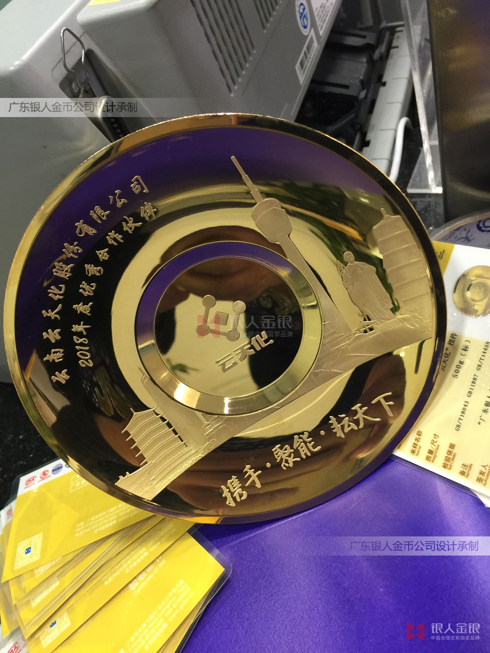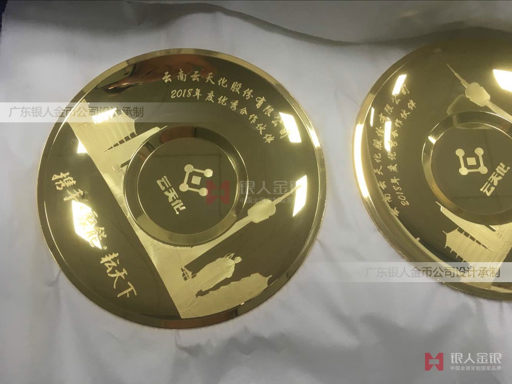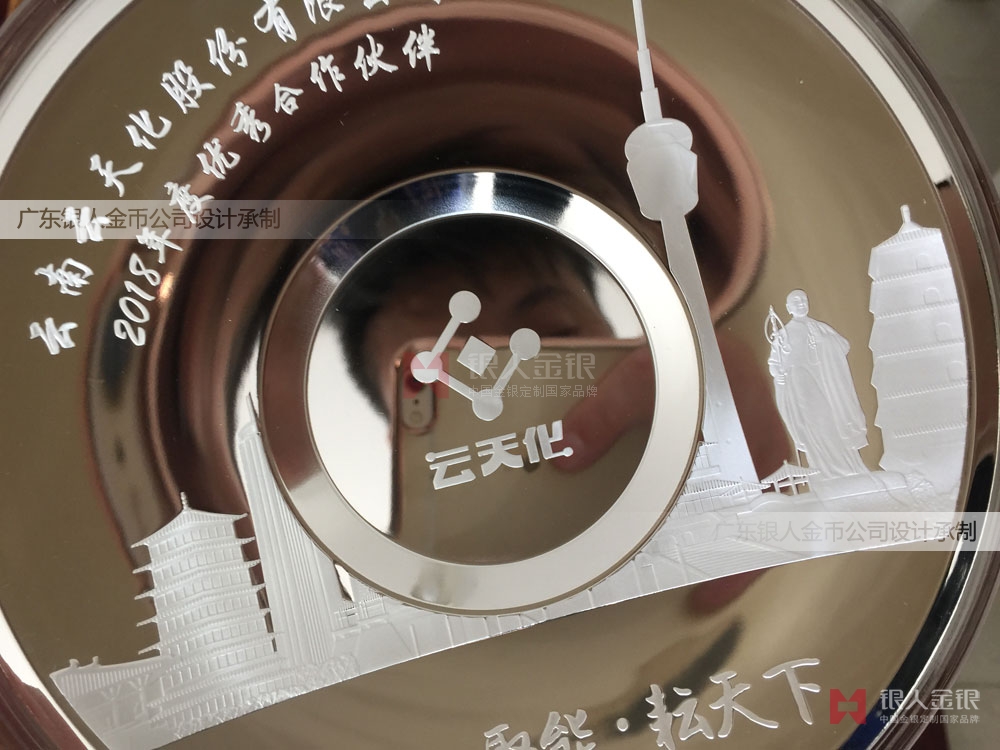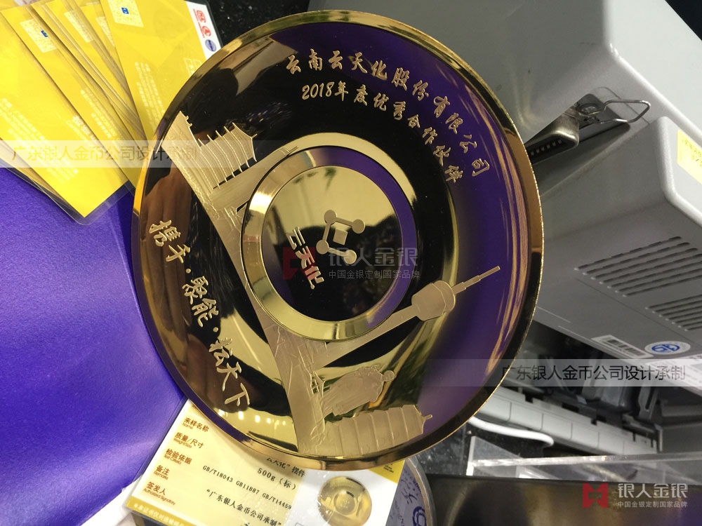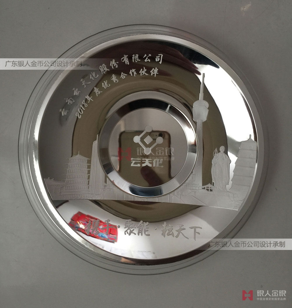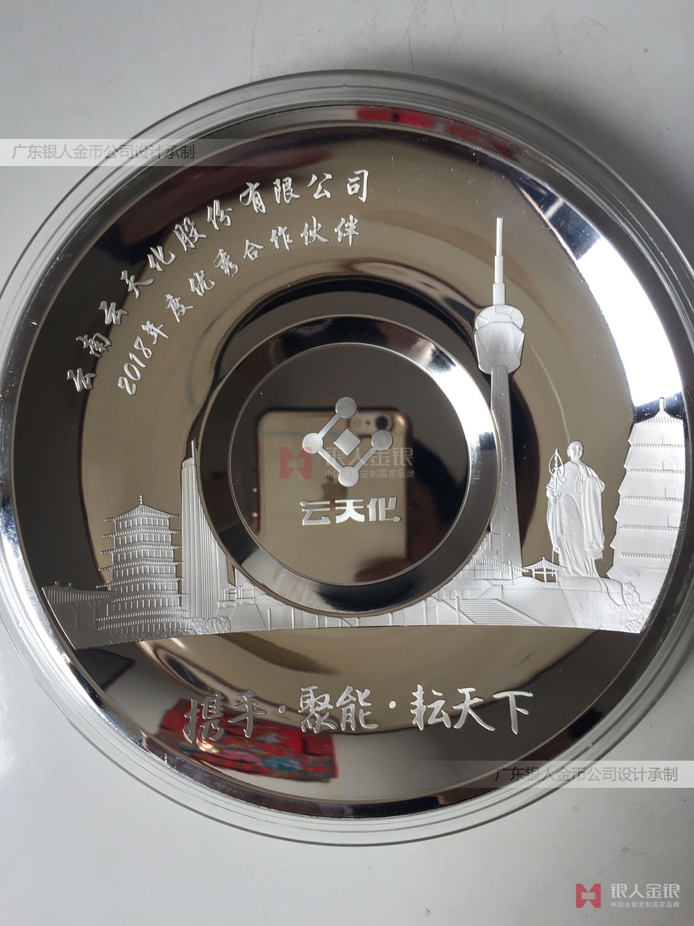 值此紀念改革開放40周年之際,昆明云南云天化股份有限公司為表彰優秀經銷商、頒發授予純金銀紀念盤,以資鼓勵。