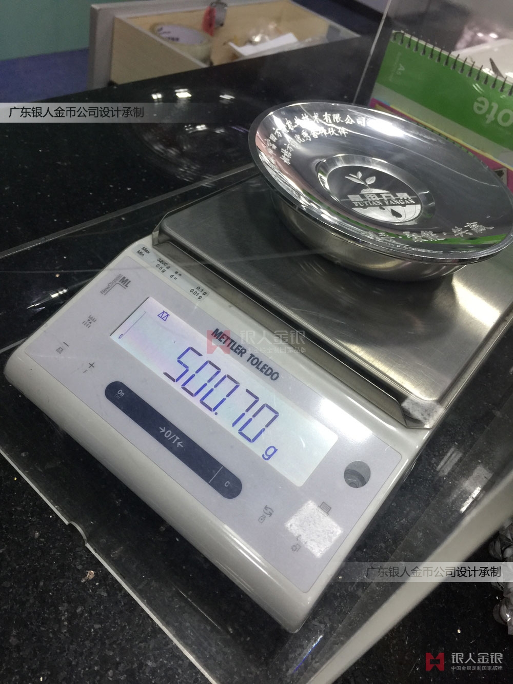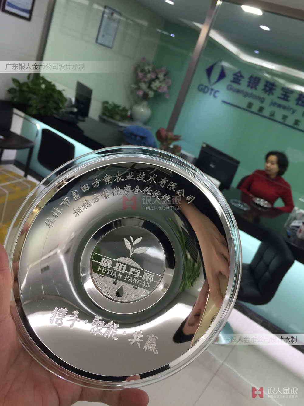 廣西桂林富田公司銀盤圓盤擺件定制質量合格證書