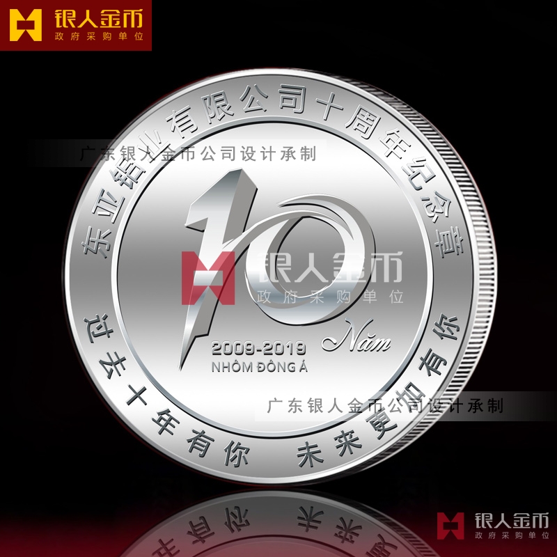 東亞鋁業集團在創業十年后恰逢公司成立10周年紀念慶典、委托定制銀紀念幣1200枚。