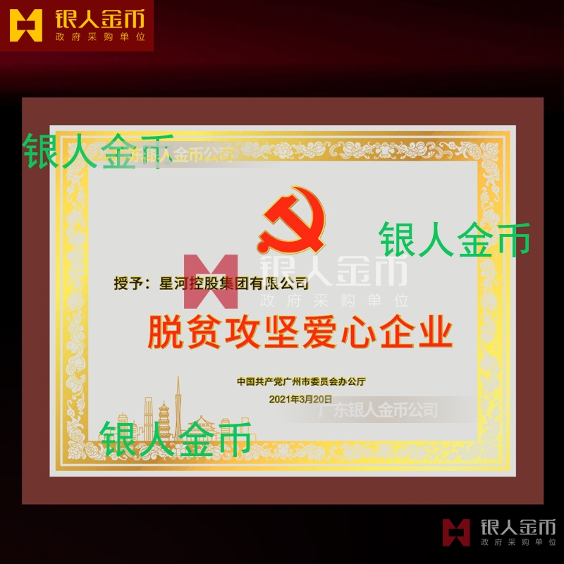 中共廣州市委辦公廳脫貧攻堅愛心企業獎牌牌匾_梅州脫貧攻堅愛心幫扶捐助企業獎牌_脫貧攻堅愛心慈善捐贈企業獎牌銅牌