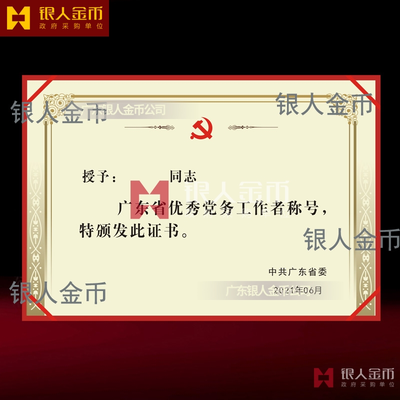 中共廣東省委組織部優(yōu)秀黨務(wù)工作者榮譽(yù)證書_全省優(yōu)秀黨務(wù)工作者獎(jiǎng)勵(lì)證書_廣東省優(yōu)秀黨務(wù)工作者榮譽(yù)稱號榮譽(yù)獲獎(jiǎng)證書兩優(yōu)一先獎(jiǎng)牌獎(jiǎng)?wù)伦C書