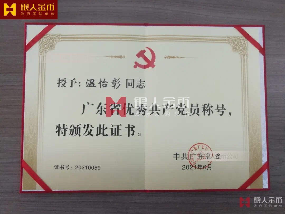 【證書制作】 廣東銀人金幣公司-獎(jiǎng)勵(lì)證書制作廠家