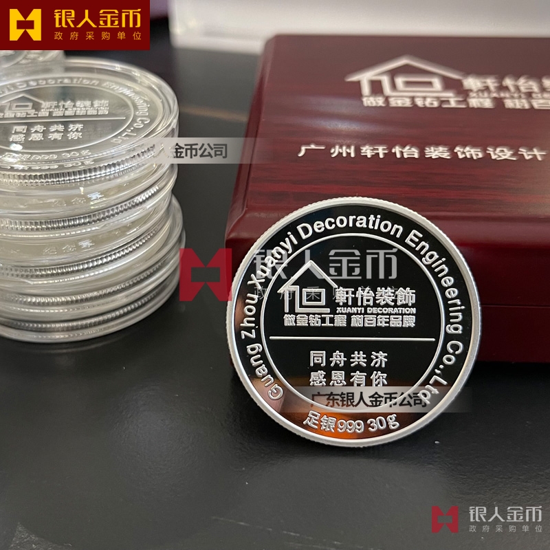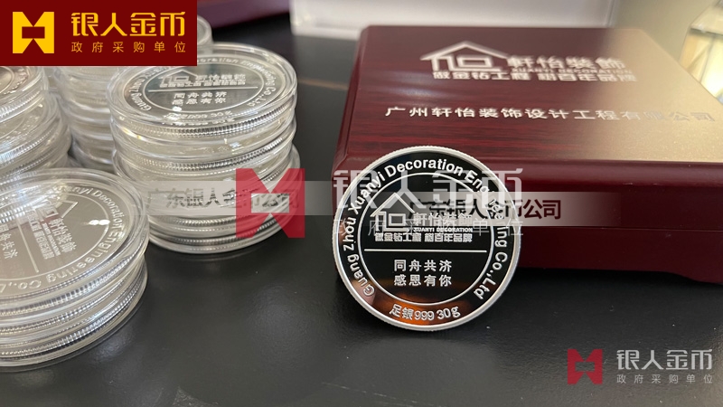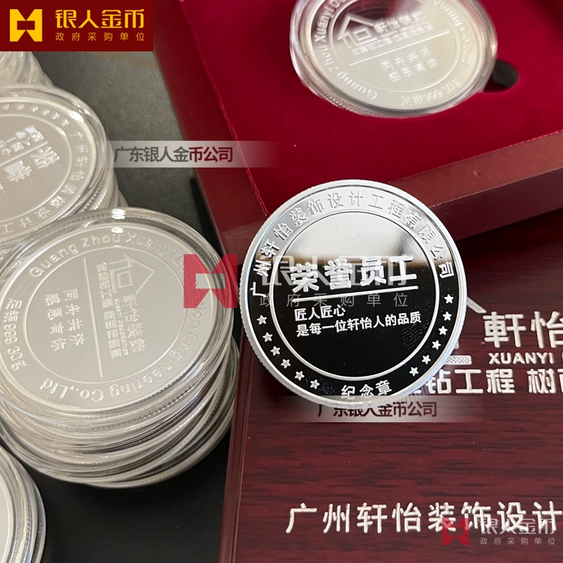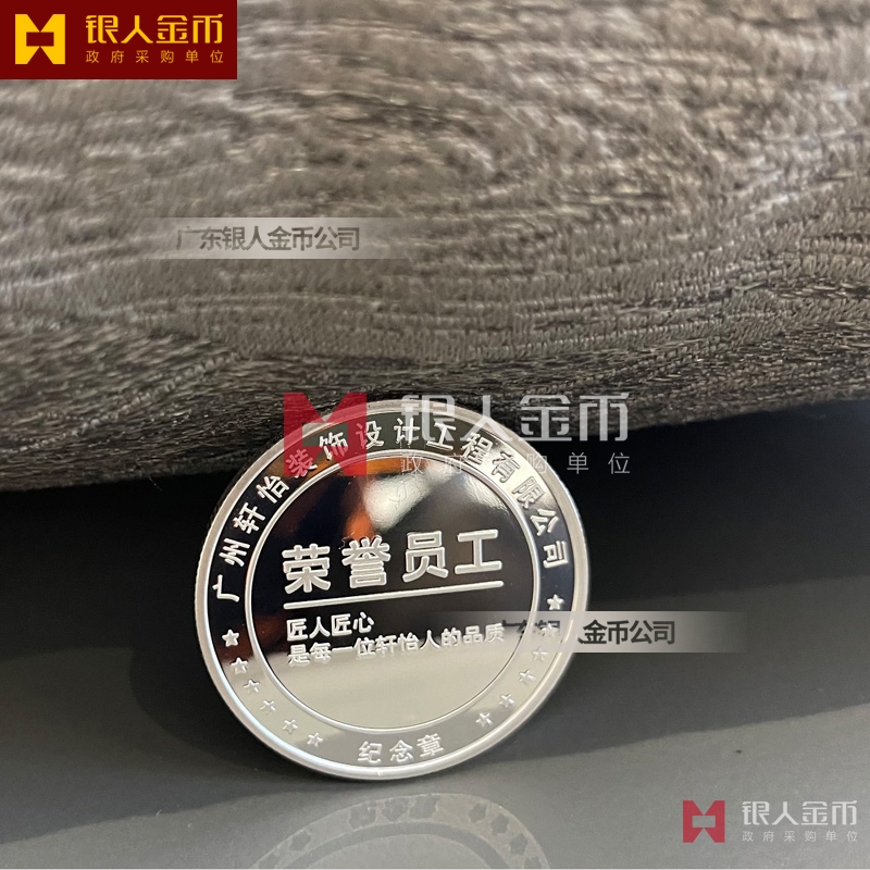 廣州軒怡裝飾公司周年紀念活動表彰獎勵優秀員工足銀榮譽紀念章定制_優秀員工銀質徽章定制_榮譽員工純銀紀念章定制_集團榮譽員工銀制證章定制_純銀紀念胸章定制_純銀獎牌定制