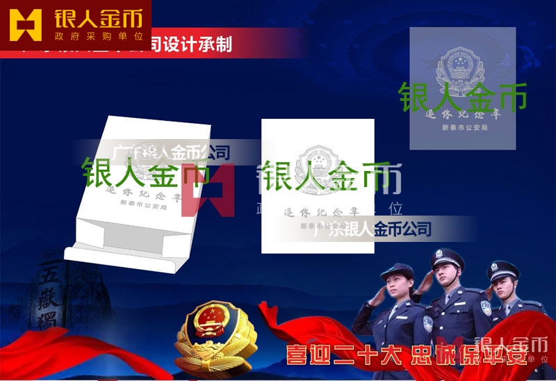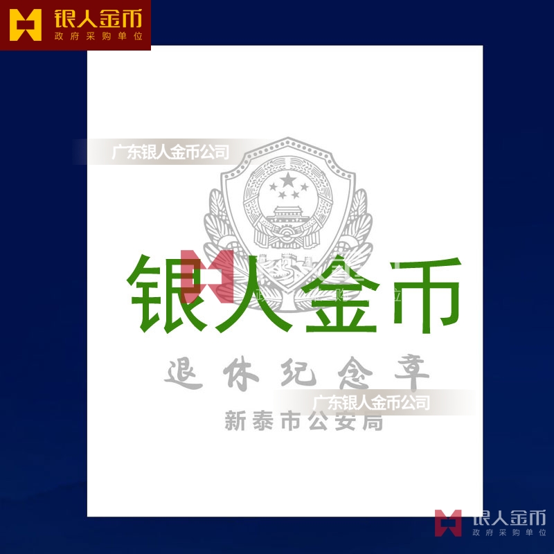 山東省公安廳泰安市新泰市公安局公安機關民警退休紀念章定制_從警年限紀念榮譽章_警察從警30周年40周年紀念章定制_干警光榮退休紀念章定做訂制制作