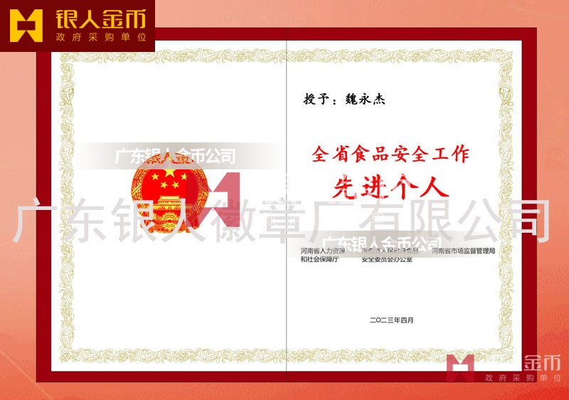 河南省政府全省食品安全工作表彰獎(jiǎng)勵(lì)證書(shū)定制制作_河南省人力資源和社會(huì)保障廳獎(jiǎng)勵(lì)表彰榮譽(yù)證書(shū)定做_河南省市場(chǎng)監(jiān)督管理局榮譽(yù)獎(jiǎng)勵(lì)表彰證書(shū)訂制