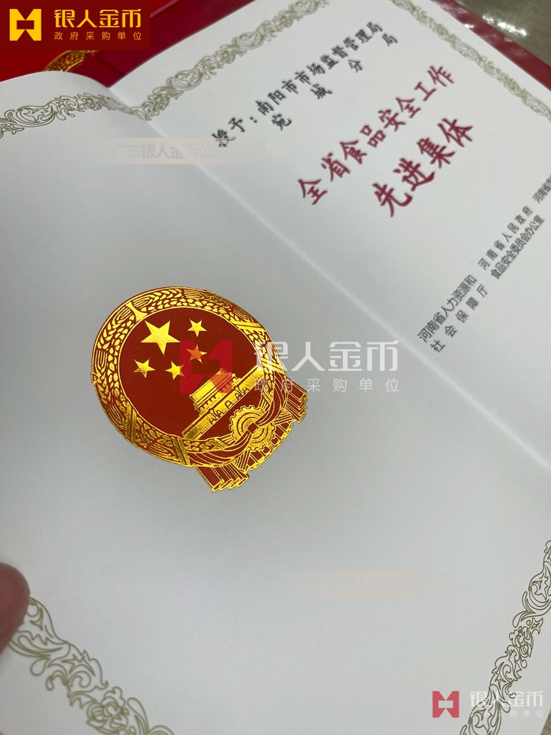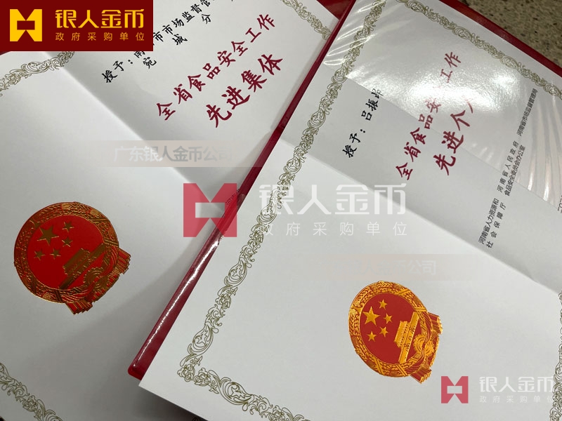 【證書(shū)制作】 廣東銀人金幣公司-獎(jiǎng)勵(lì)證書(shū)制作廠家