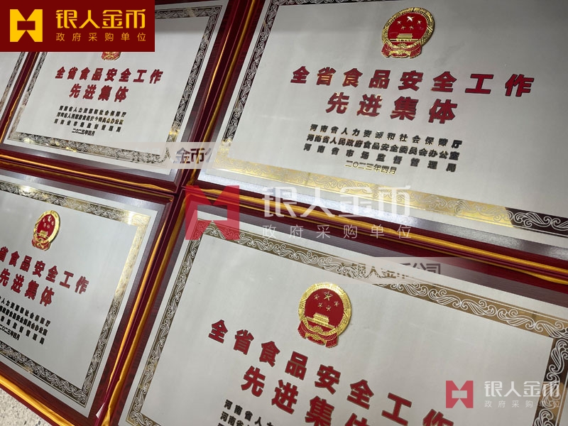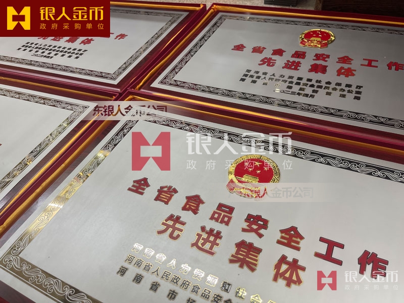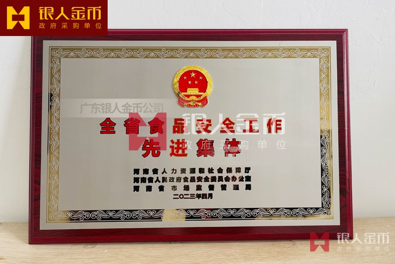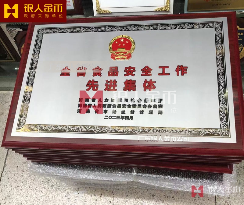 河南省政府表彰食品安全先進(jìn)集體獎牌訂制_食品安全先進(jìn)集體牌匾制作_高檔獎牌定制_先進(jìn)集體匾額制做_政府單位記功獎牌制作_政府部門榮譽(yù)稱號獎牌定制