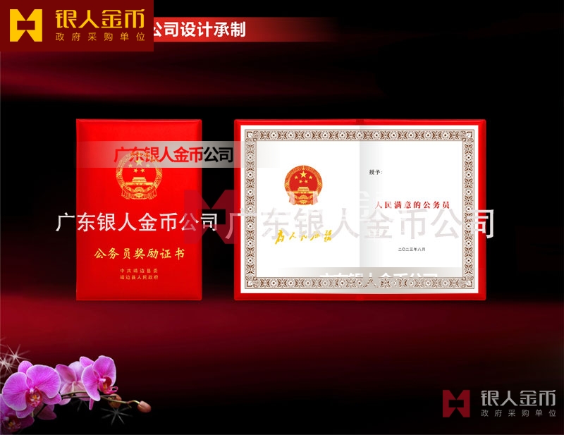 【公務員獎勵證書制作】 廣東銀人金幣公司-獎勵證書定制